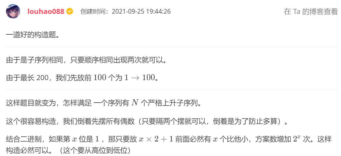 的所有的 个子序列中,恰好有 ( )个串是好的,其中 是给出的。